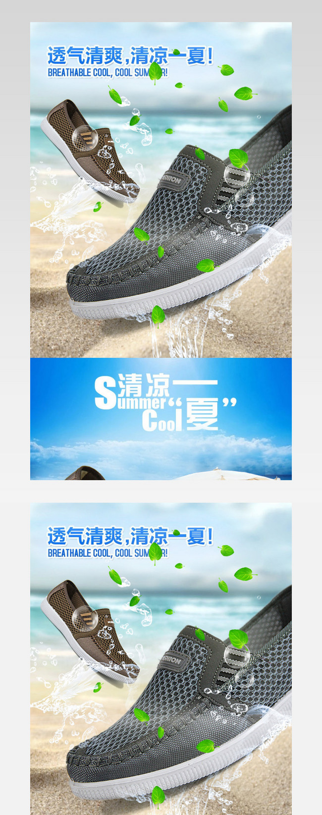 夏季男鞋海报 网鞋透气鞋 淘宝男鞋详情页海报