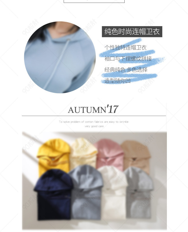 宝贝描述 背景 尺寸描述 海报 详情页模板 源文件下载 淘宝女装 时尚韩版卫衣详情页模板 海报 洗涤指标 欧美风格PSD封层文件