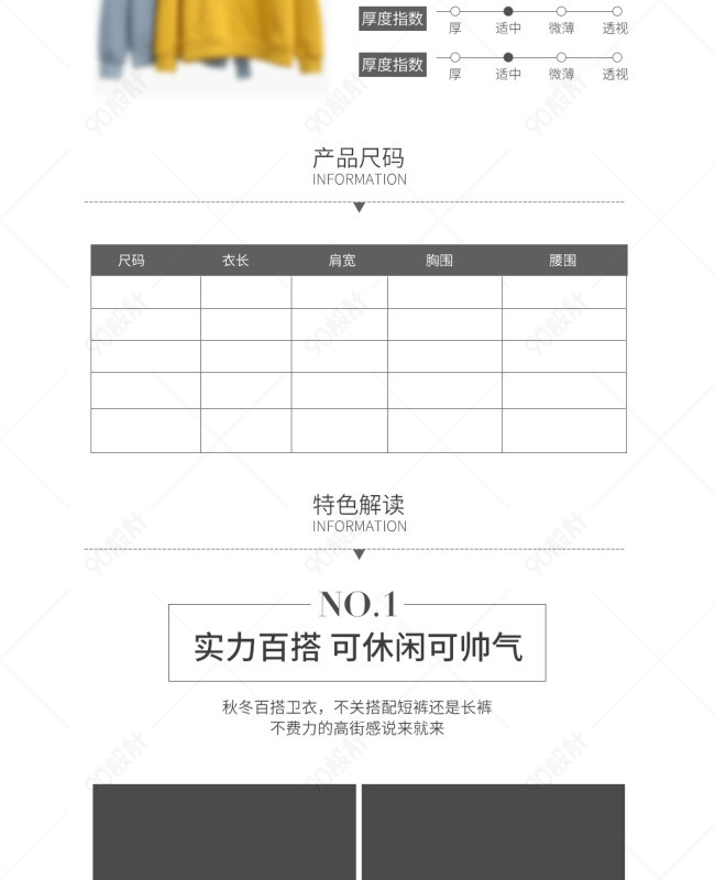 90设计提供淘宝天猫服装卫衣详情页模板PSD女装详情页设计素材下载,高清PSD格式。【通用】多类目可用,产品、模特均可替换。【PSD】精细分层,贴好片。【设计】由90设计师独家设计。点击右侧免费下载按钮可进行淘宝天猫服装卫衣详情页模板PSD女装详情页淘宝设计素材高速下载。