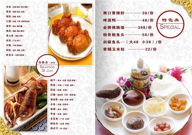 海鲜类菜单