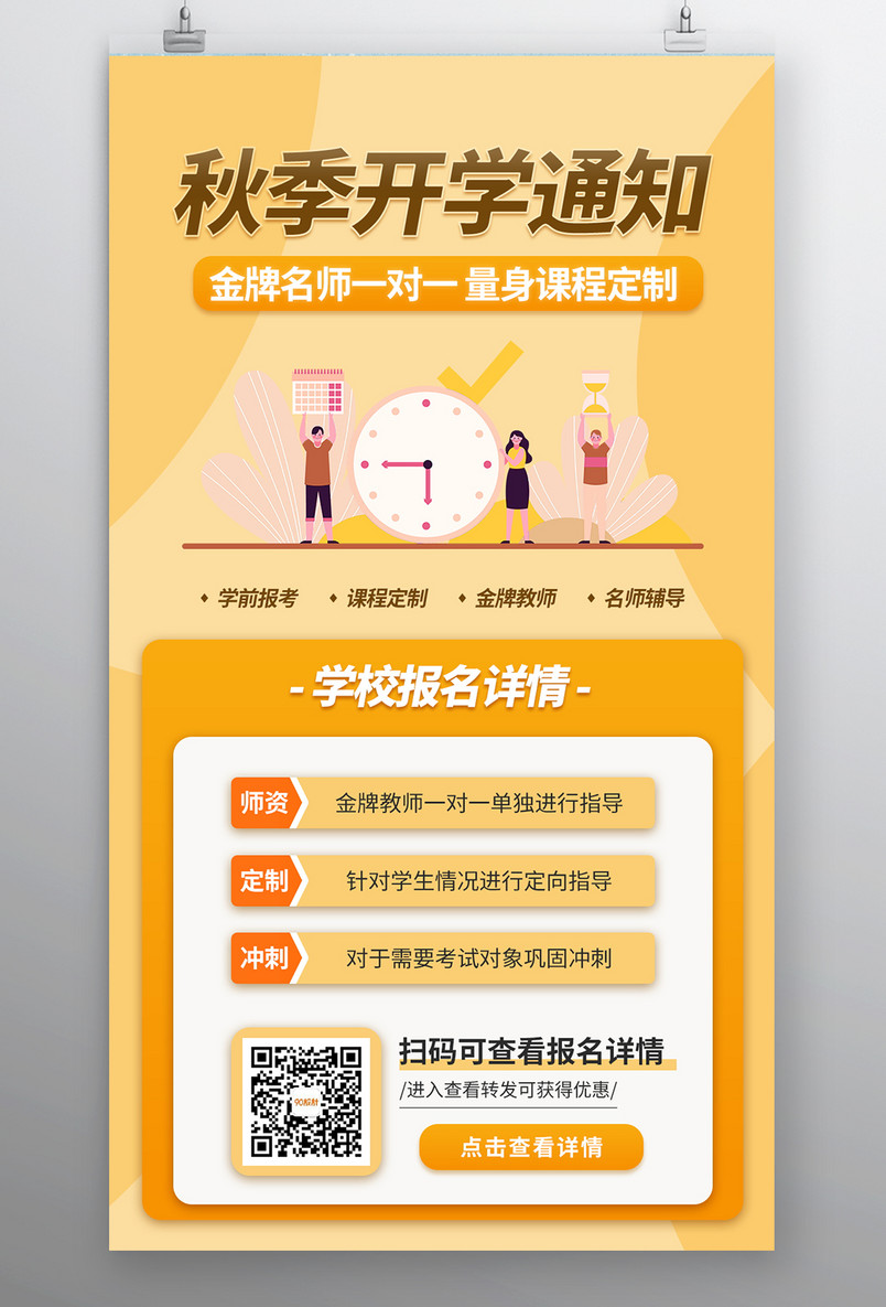 时尚简约扁平化浅色渐变风格招生开学课程金牌讲师教育培训海报