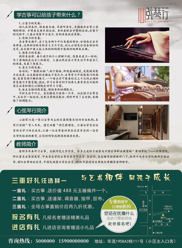 心弦琴行古筝宣传单页广告