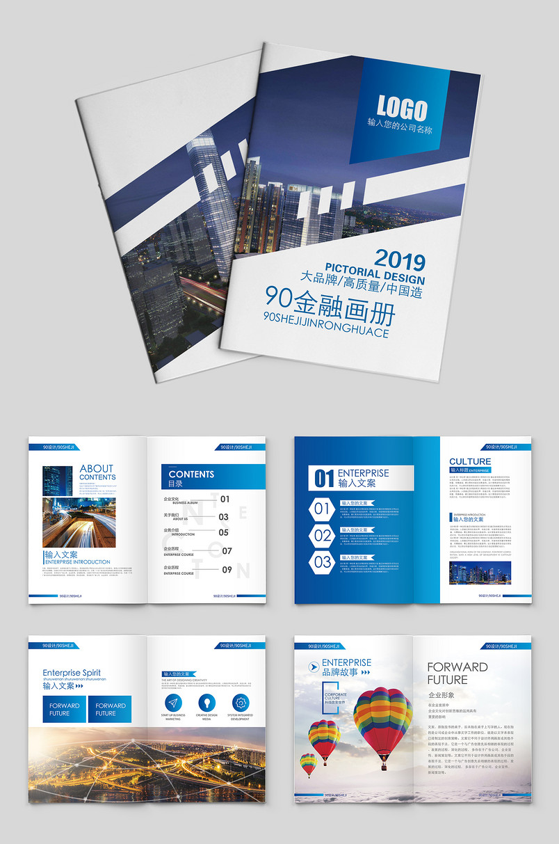 蓝色创意时尚简约金融企业画册