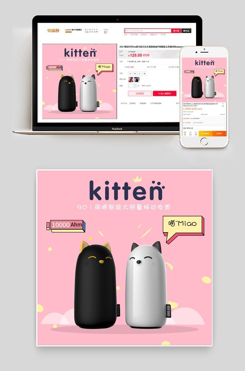 可爱猫猫移动电源直通车背景充电宝直通车