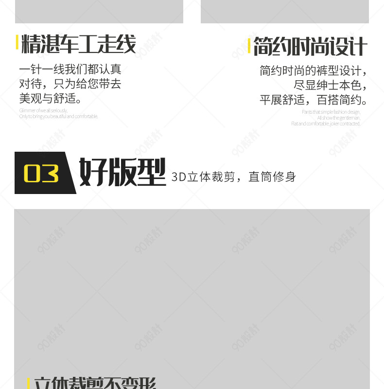 90设计提供男裤运动裤休闲裤短裤男士男装服装潮流黑色详情页设计素材下载,高清PSD格式。【通用】多类目可用,产品、模特均可替换。【PSD】精细分层,贴好片。【设计】由90设计师独家设计。点击右侧免费下载按钮可进行男裤运动裤休闲裤短裤男士男装服装潮流黑色详情页淘宝设计素材高速下载。