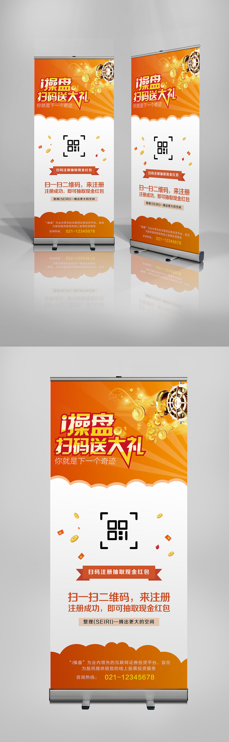 橙色时尚扫码关注微信支付宝促销宣传活动x展架易拉宝