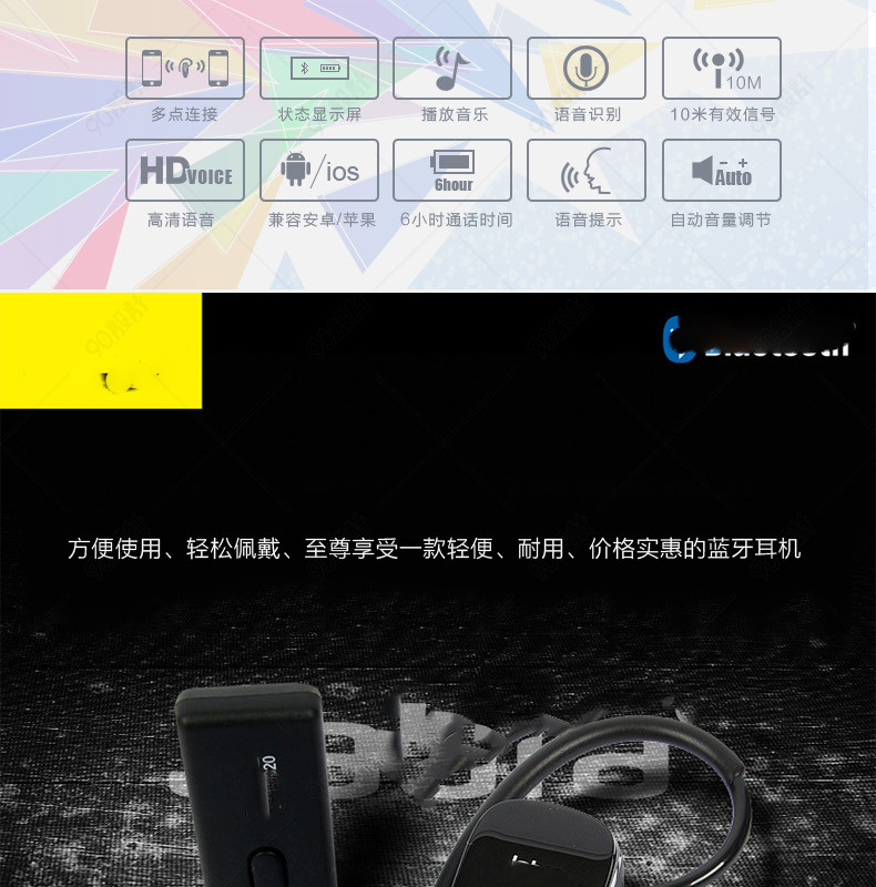 易行 模板 电子产品详情页 耳机 蓝牙 高清音频 淘宝 中文模板