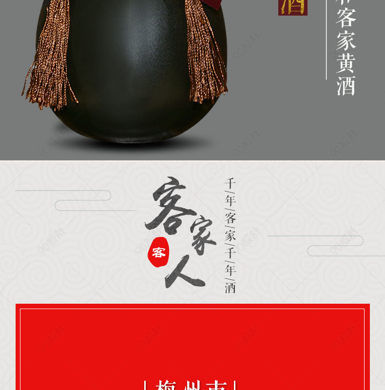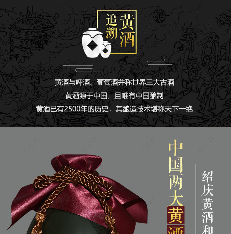 黑色简约复古大气客家黄酒老酒通用详情页