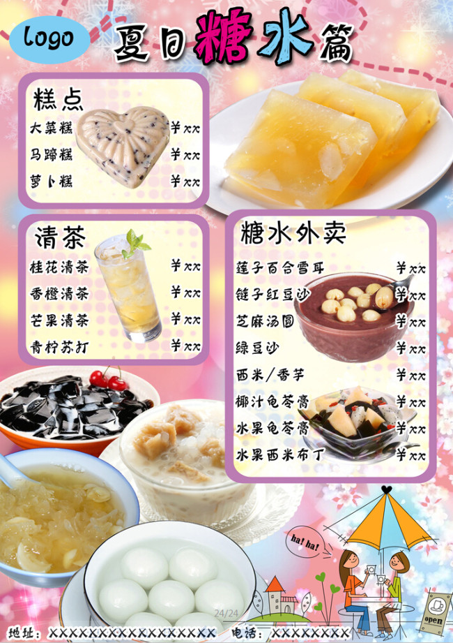 夏日 糖水 餐饮 饮品 饮料 糕点 清茶 糖水 外卖 广告 宣传单 彩页 菜单