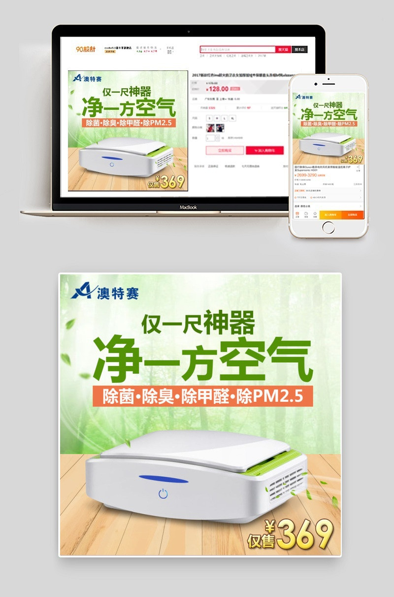 车载 空气净化器 主图 仅一尺神器 净一方空气 绿色背景 木板地板
