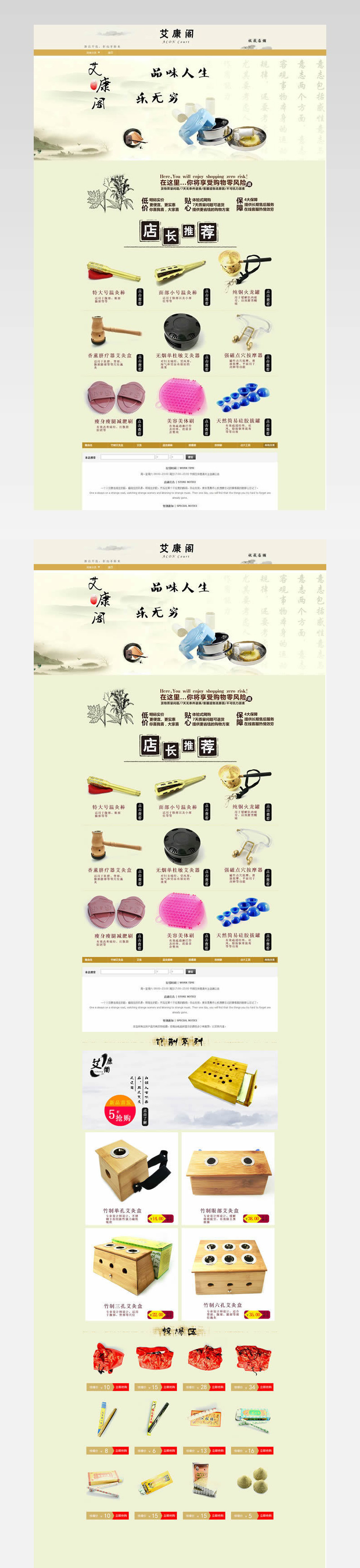 中国风淘宝针灸用具店铺装修模板psd素材 温灸棒 艾 减肥刷 硅胶拔罐 艾灸