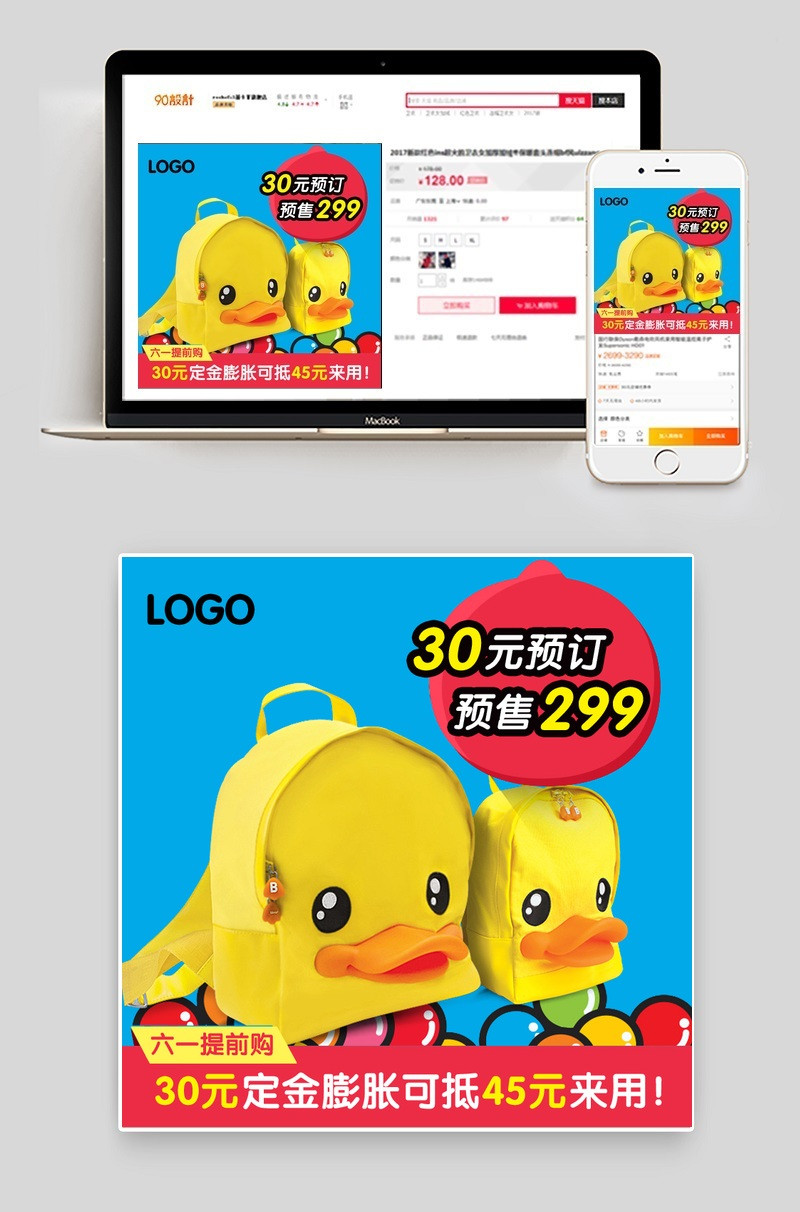 淘宝天猫儿童可爱卡通书包主图直通车海报