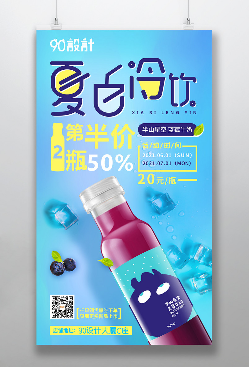 创意夏日冷饮蓝莓牛奶果汁美食海报