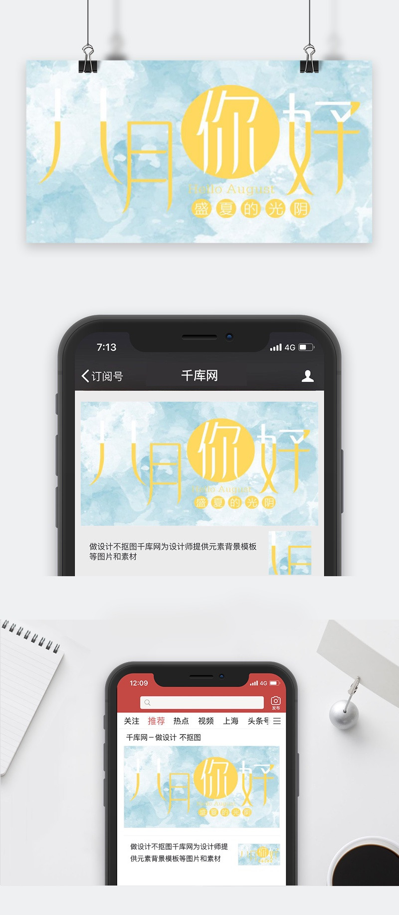 90设计提供原创八月你好公众号封面图设计素材下载,高清PSD格式。【通用】多类目可用,产品、模特均可替换。【PSD】精细分层,贴好片。【设计】由90设计师独家设计。点击右侧免费下载按钮可进行原创八月你好公众号封面图淘宝设计素材高速下载。