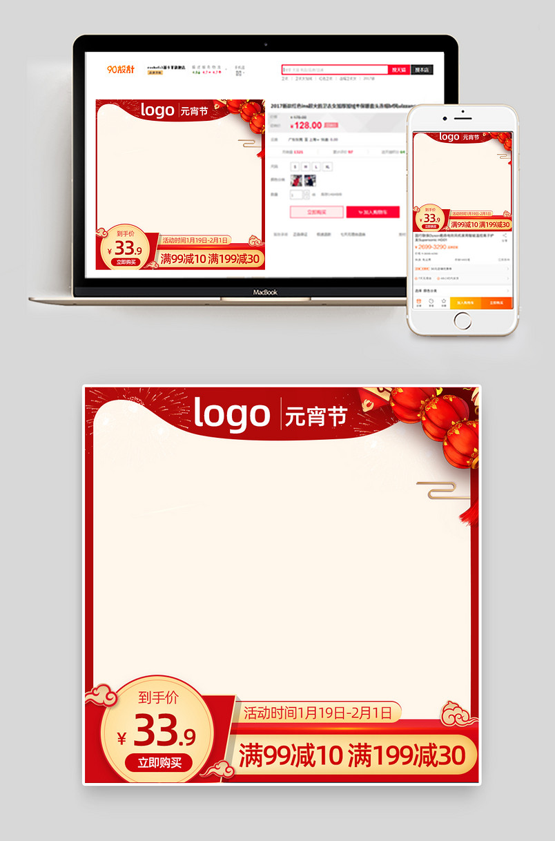 2019年元宵节红色中国风新年主图包包日常通用促销直通车图