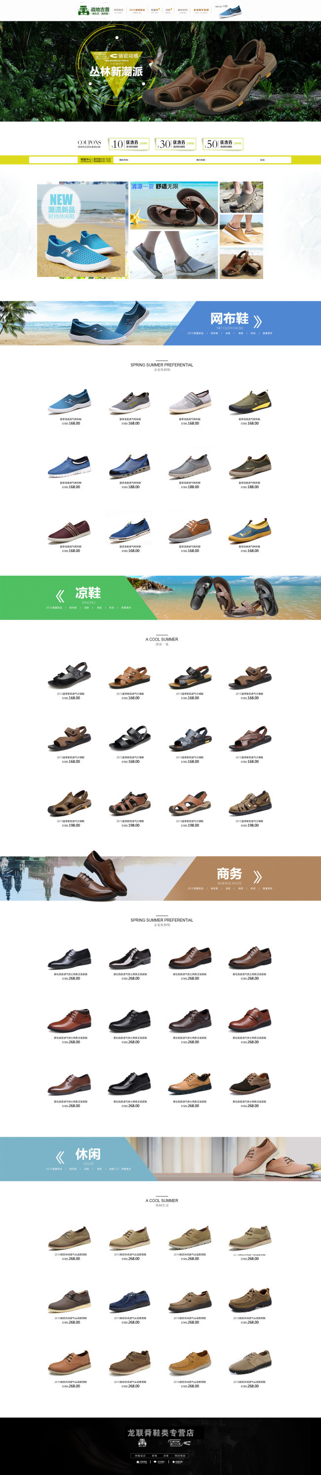 淘宝首页模版 首页模版下载 淘宝全屏页面装修 淘宝素材下载 运动鞋类首页装修 网布鞋 凉鞋 森林背景 优惠券