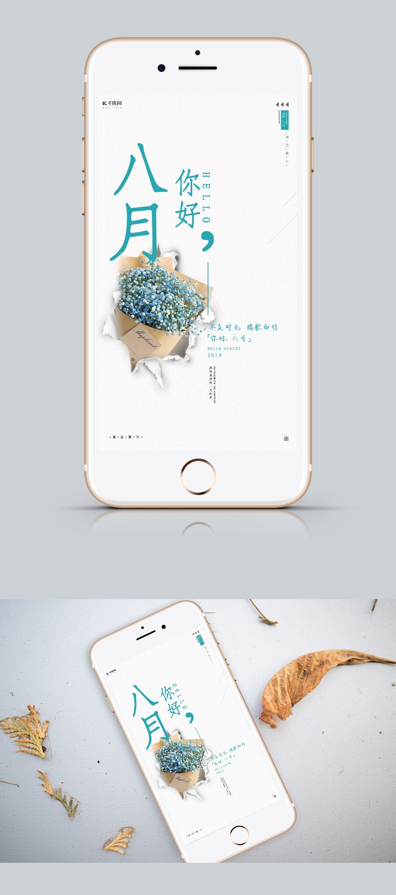 小清新八月你好手机海报
