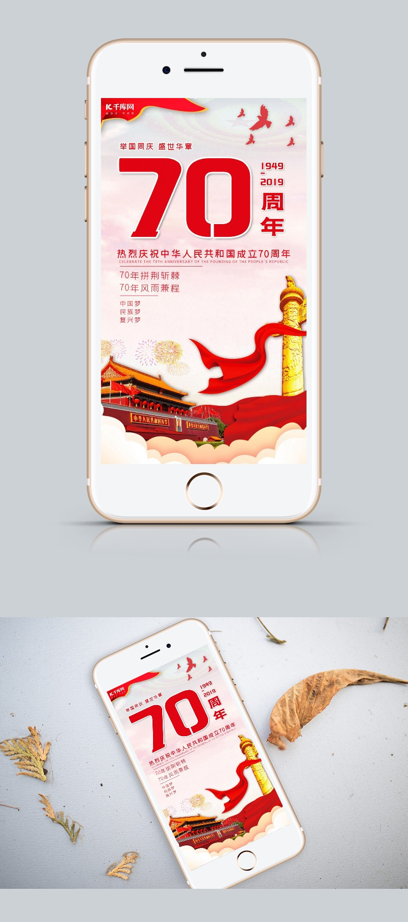 90设计提供新中国成立70周年国庆节手机海报设计素材下载,高清PSD格式。【通用】多类目可用,产品、模特均可替换。【PSD】精细分层,贴好片。【设计】由90设计师独家设计。点击右侧免费下载按钮可进行新中国成立70周年国庆节手机海报淘宝设计素材高速下载。