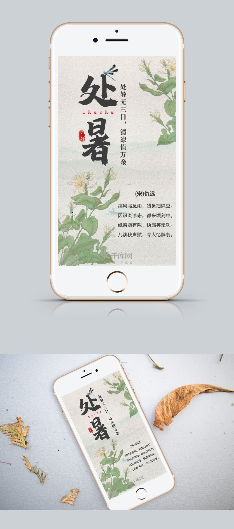 水墨古风处暑节气手机海报