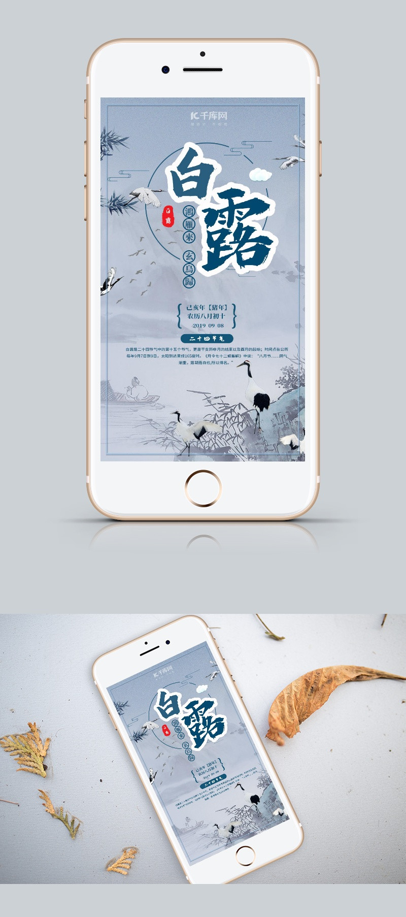 古风 蓝色 水墨 二十四节气海报 白露手机海报 传统节气手机海报 水墨风
