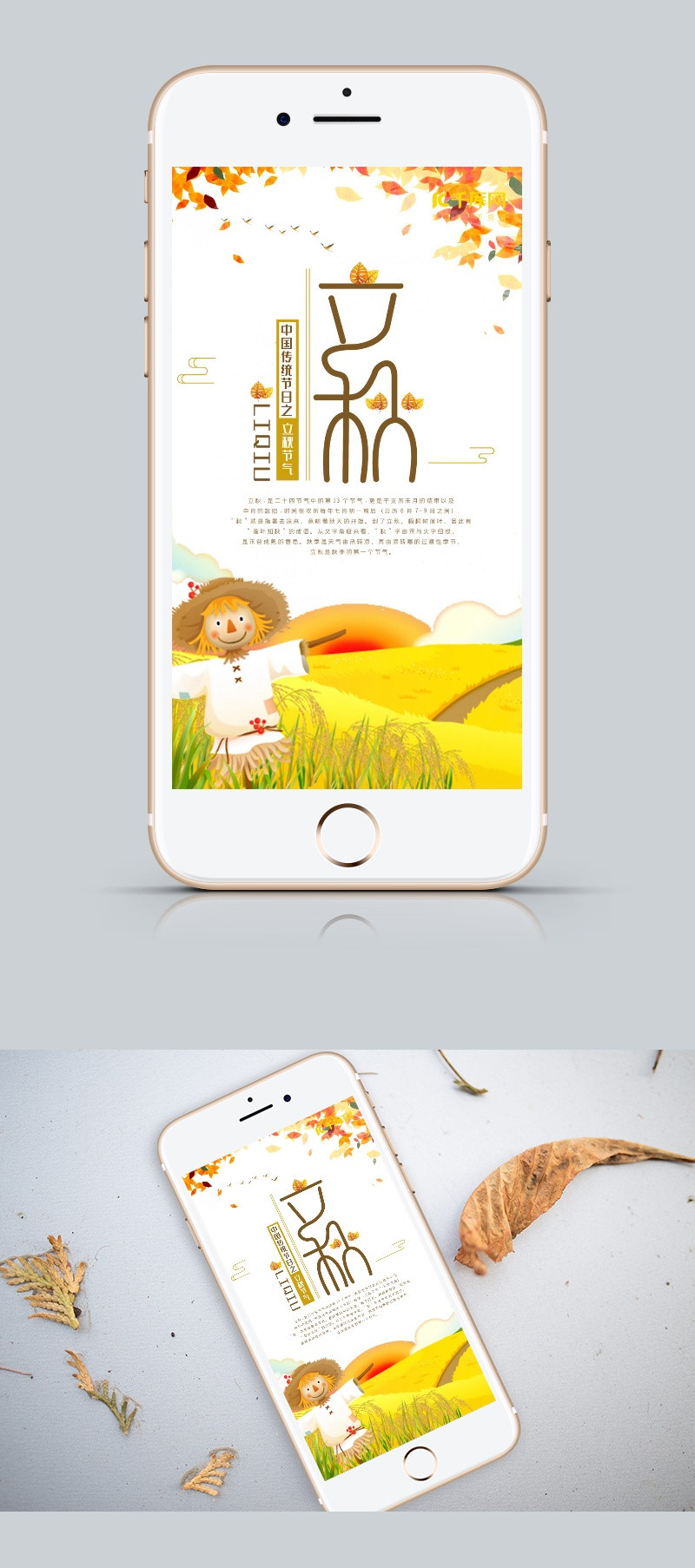 原创金黄色稻草人立秋手机海报