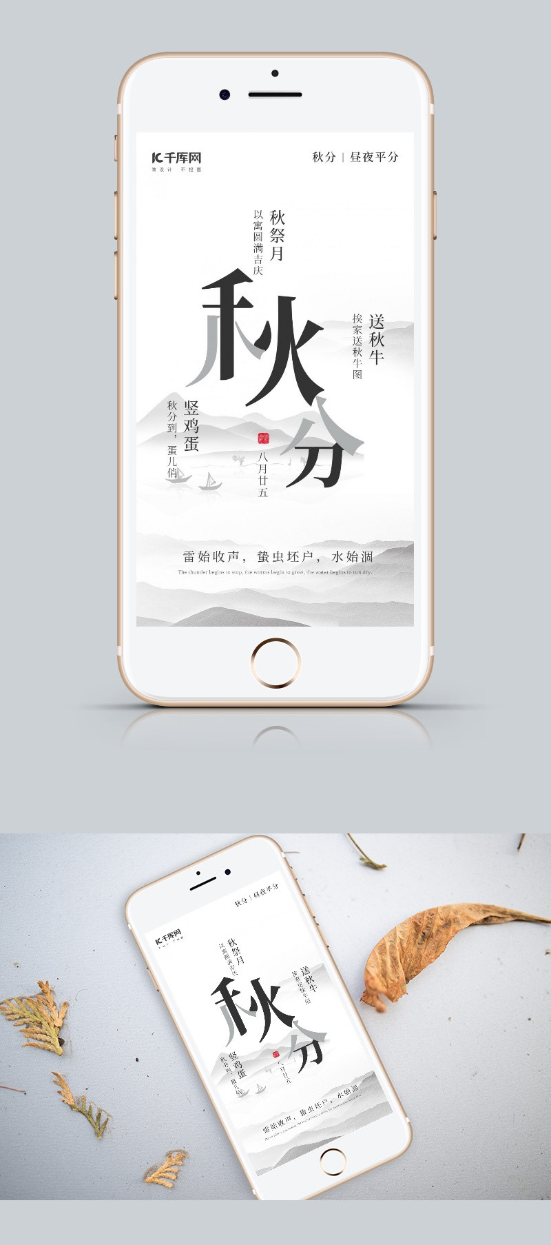 90设计提供二十四节气秋分水墨手机海报设计素材下载,高清PSD格式。【通用】多类目可用,产品、模特均可替换。【PSD】精细分层,贴好片。【设计】由90设计师独家设计。点击右侧免费下载按钮可进行二十四节气秋分水墨手机海报淘宝设计素材高速下载。