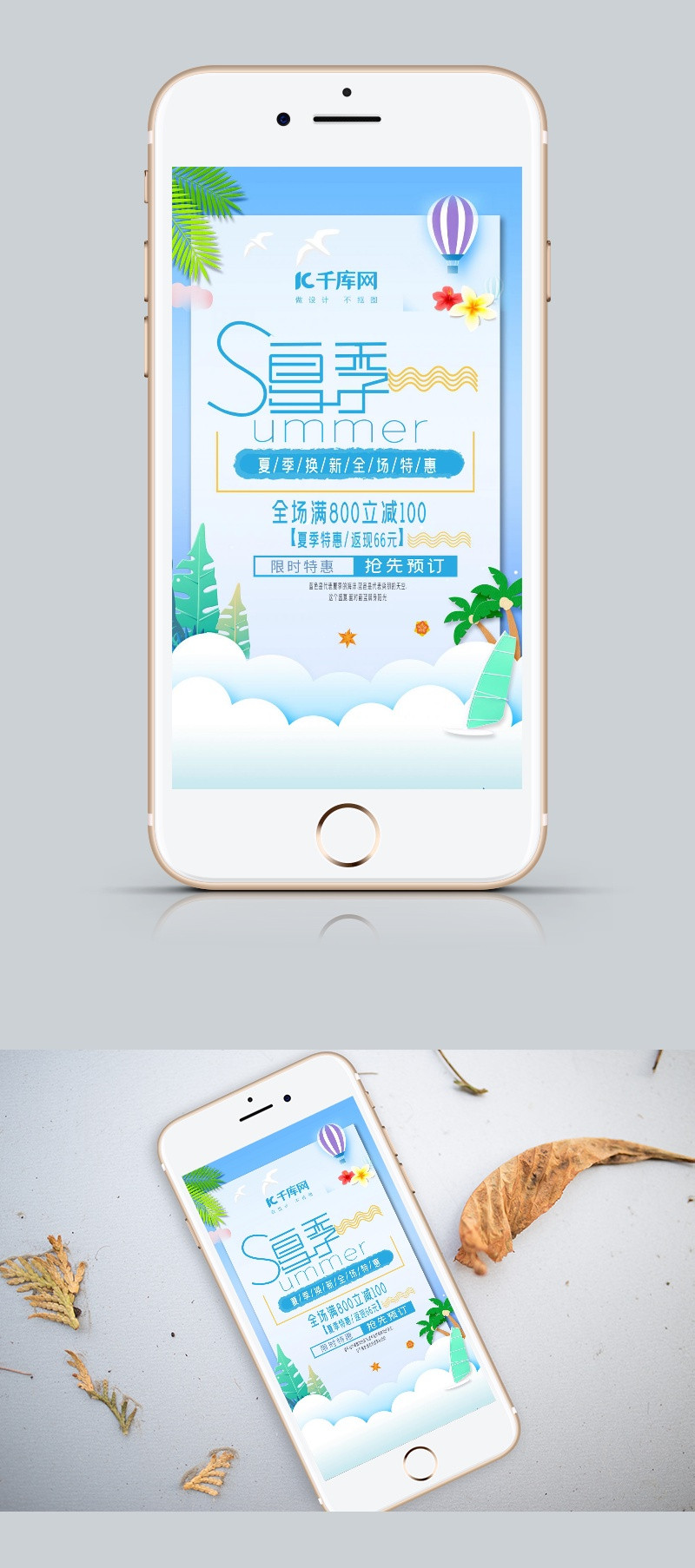 原创小清新蓝色夏季促销手机海报