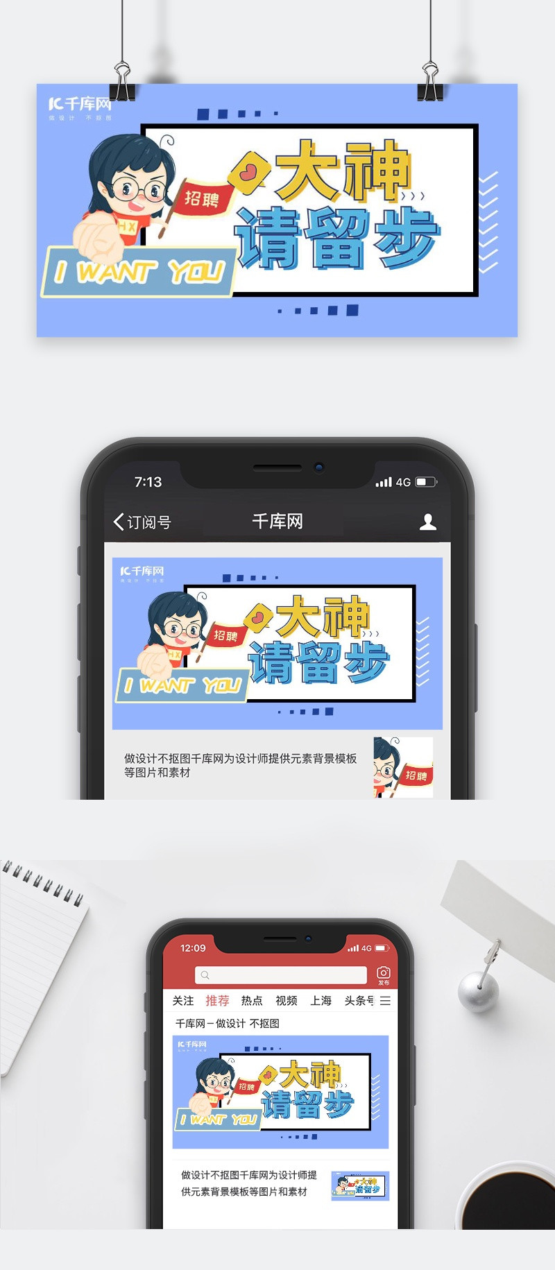 90设计提供蓝色卡通简约大神请留步企业招聘公众号封面设计素材下载,高清PSD格式。【通用】多类目可用,产品、模特均可替换。【PSD】精细分层,贴好片。【设计】由90设计师独家设计。点击右侧免费下载按钮可进行蓝色卡通简约大神请留步企业招聘公众号封面淘宝设计素材高速下载。