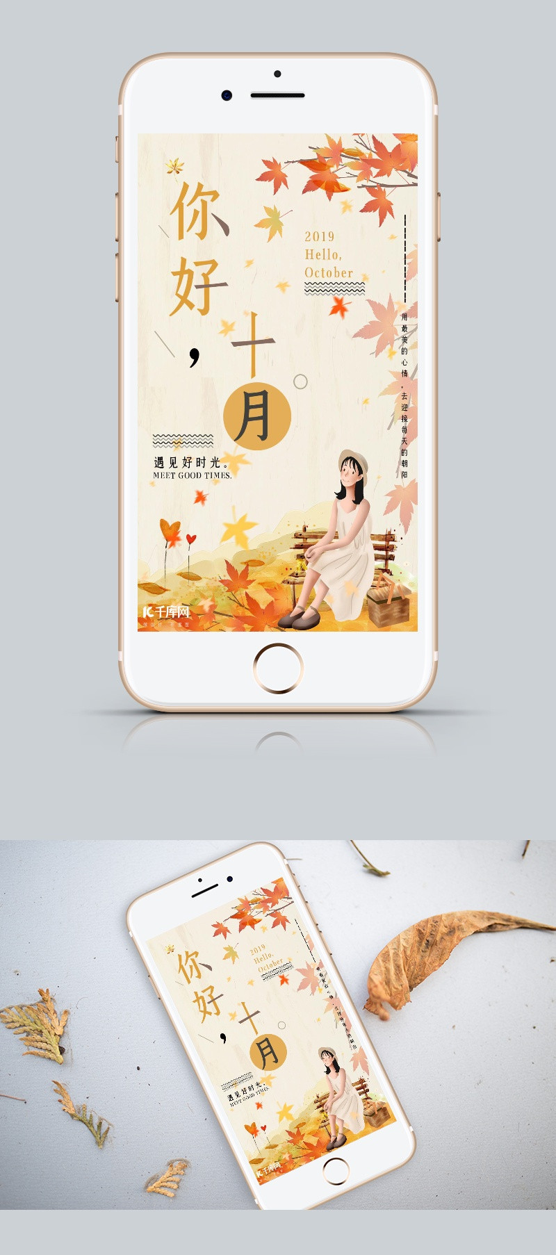 简约唯美你好十月手机海报