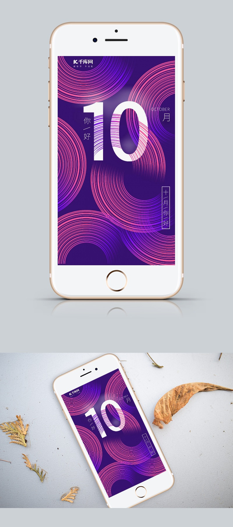 原创 你好十月 十月你好 你好10月 10月 十月 渐变 立体 等距 月份 手机海报