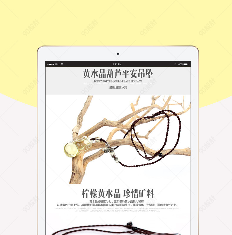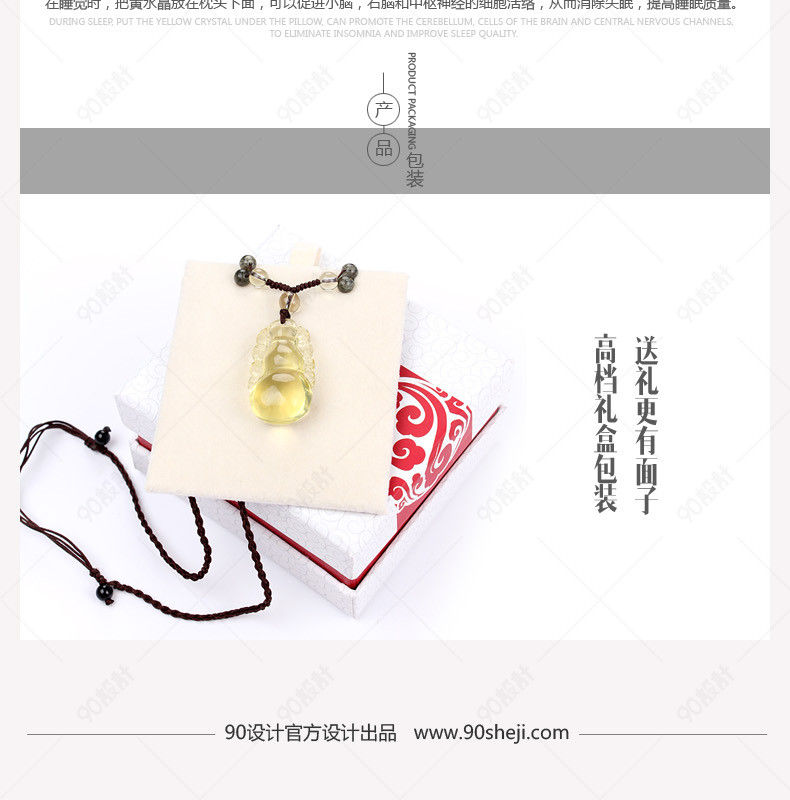 90设计提供简约大气淘宝天猫黄水晶玉器平安吊坠项链详情页设计设计素材下载,高清PSD格式。【通用】多类目可用,产品、模特均可替换。【PSD】精细分层,贴好片。【设计】由90设计师独家设计。点击右侧免费下载按钮可进行简约大气淘宝天猫黄水晶玉器平安吊坠项链详情页设计淘宝设计素材高速下载。