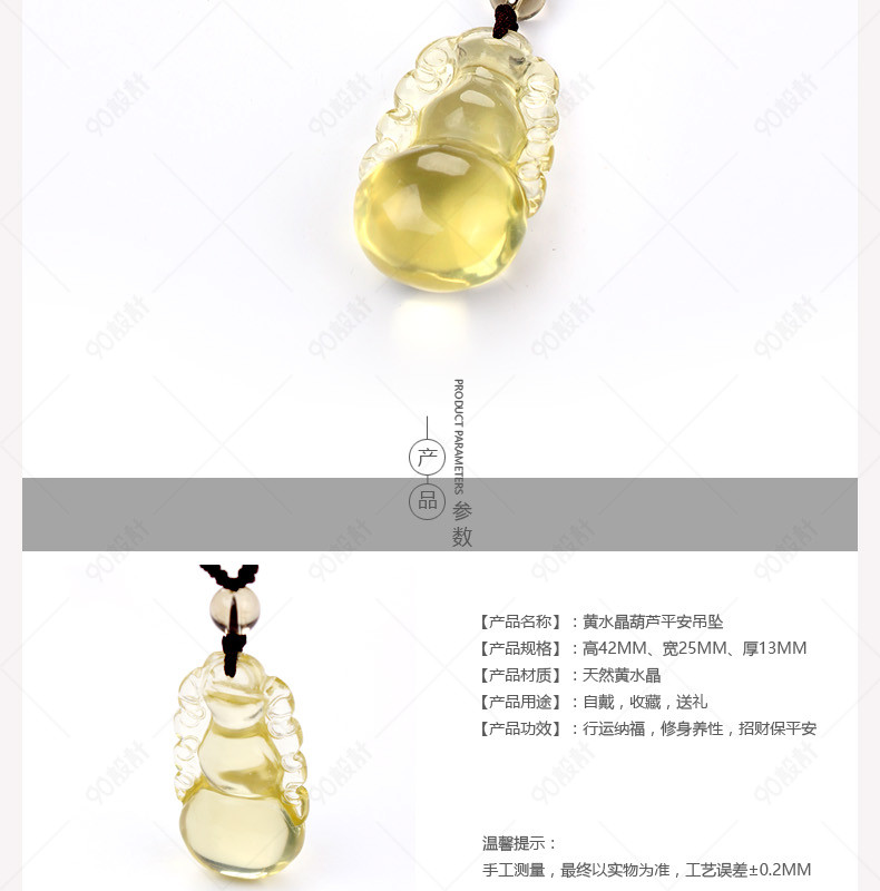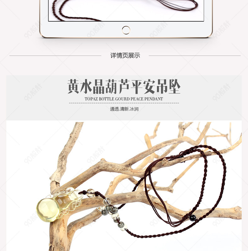 简约大气淘宝天猫黄水晶玉器平安吊坠项链详情页设计