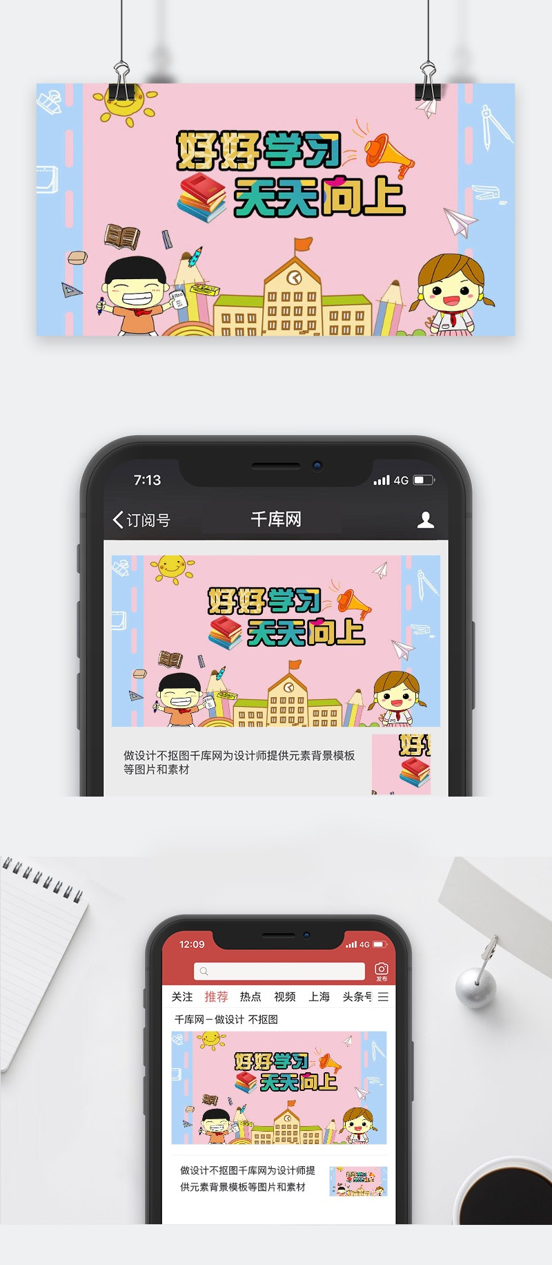 90设计提供开学季好好学习天天向上微信公众号封面图设计素材下载,高清PSD格式。【通用】多类目可用,产品、模特均可替换。【PSD】精细分层,贴好片。【设计】由90设计师独家设计。点击右侧免费下载按钮可进行开学季好好学习天天向上微信公众号封面图淘宝设计素材高速下载。