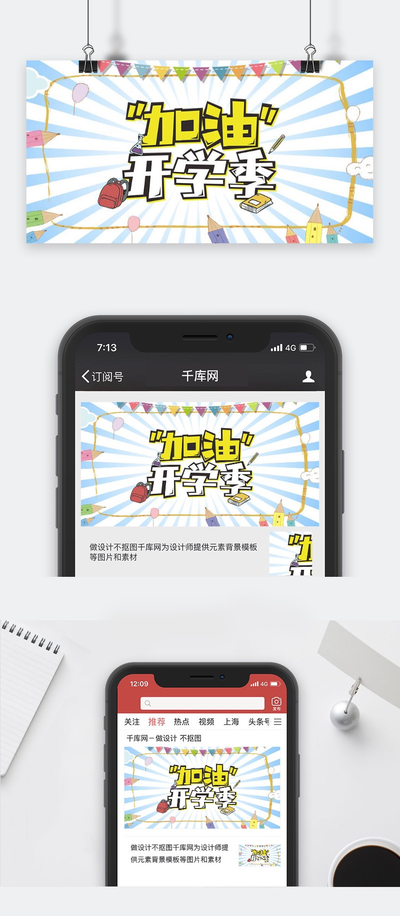 90设计提供加油开学季微信公众号封面图设计素材下载,高清PSD格式。【通用】多类目可用,产品、模特均可替换。【PSD】精细分层,贴好片。【设计】由90设计师独家设计。点击右侧免费下载按钮可进行加油开学季微信公众号封面图淘宝设计素材高速下载。