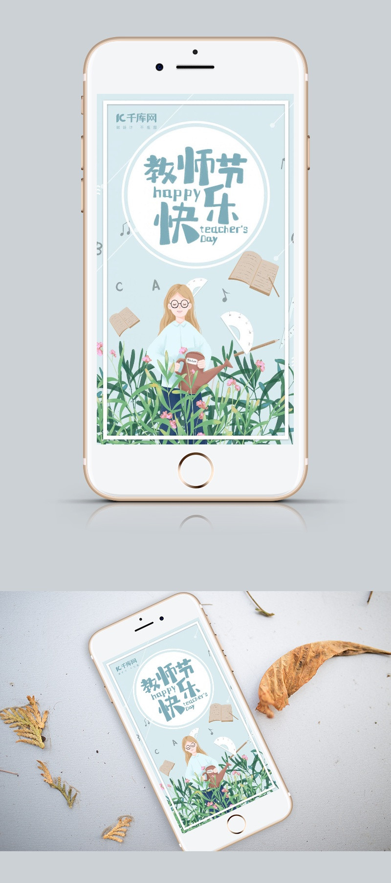 清新蓝色教师节手机海报