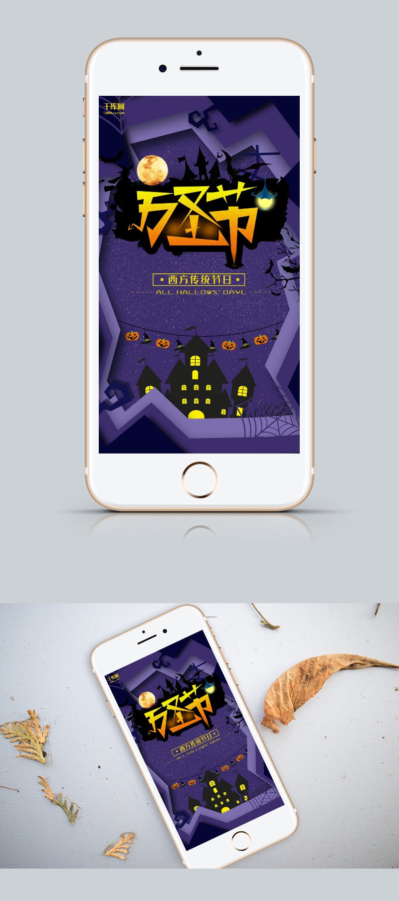 万圣节紫色剪纸节日宣传手机海报