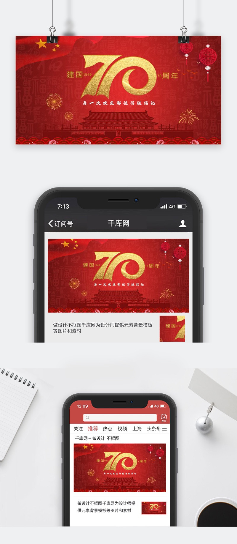90设计提供国庆节新中国成立70周年微信公众号封面图设计素材下载,高清PSD格式。【通用】多类目可用,产品、模特均可替换。【PSD】精细分层,贴好片。【设计】由90设计师独家设计。点击右侧免费下载按钮可进行国庆节新中国成立70周年微信公众号封面图淘宝设计素材高速下载。