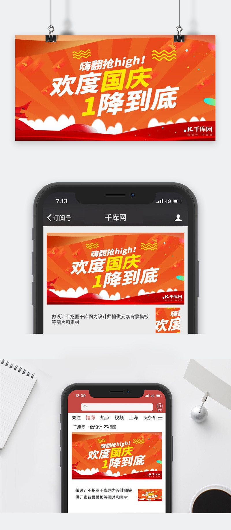 90设计提供橙色炫彩欢度国庆一降到底促销公众号封面设计素材下载,高清PSD格式。【通用】多类目可用,产品、模特均可替换。【PSD】精细分层,贴好片。【设计】由90设计师独家设计。点击右侧免费下载按钮可进行橙色炫彩欢度国庆一降到底促销公众号封面淘宝设计素材高速下载。