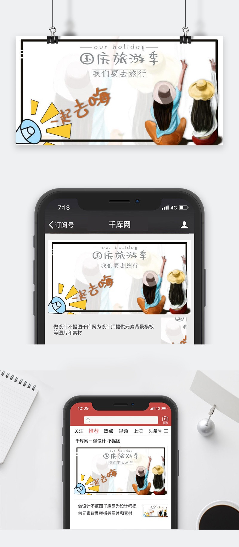 90设计提供国庆节旅游季我们去旅行公众号封面图设计素材下载,高清PSD格式。【通用】多类目可用,产品、模特均可替换。【PSD】精细分层,贴好片。【设计】由90设计师独家设计。点击右侧免费下载按钮可进行国庆节旅游季我们去旅行公众号封面图淘宝设计素材高速下载。