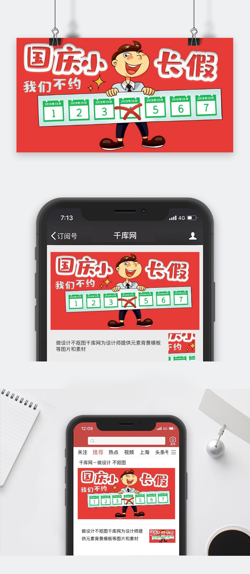 90设计提供手机配图微信配图国庆节放假通知设计素材下载,高清PSD格式。【通用】多类目可用,产品、模特均可替换。【PSD】精细分层,贴好片。【设计】由90设计师独家设计。点击右侧免费下载按钮可进行手机配图微信配图国庆节放假通知淘宝设计素材高速下载。