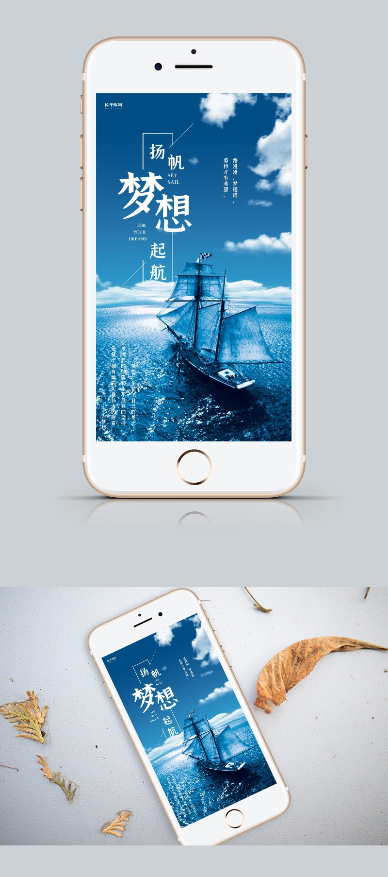 蓝色扬帆梦想起航企业文化手机海报