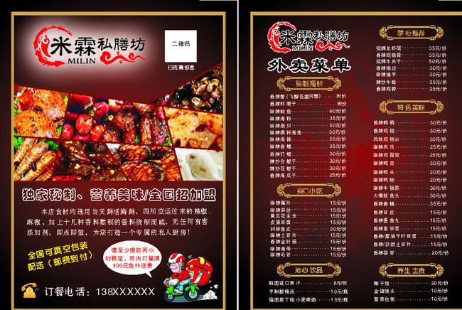 外卖单 宣传单 DM单 菜谱 CDR 深色 暗红色 烧烤 设计 广告设计 DM宣传单 CDR 菜单