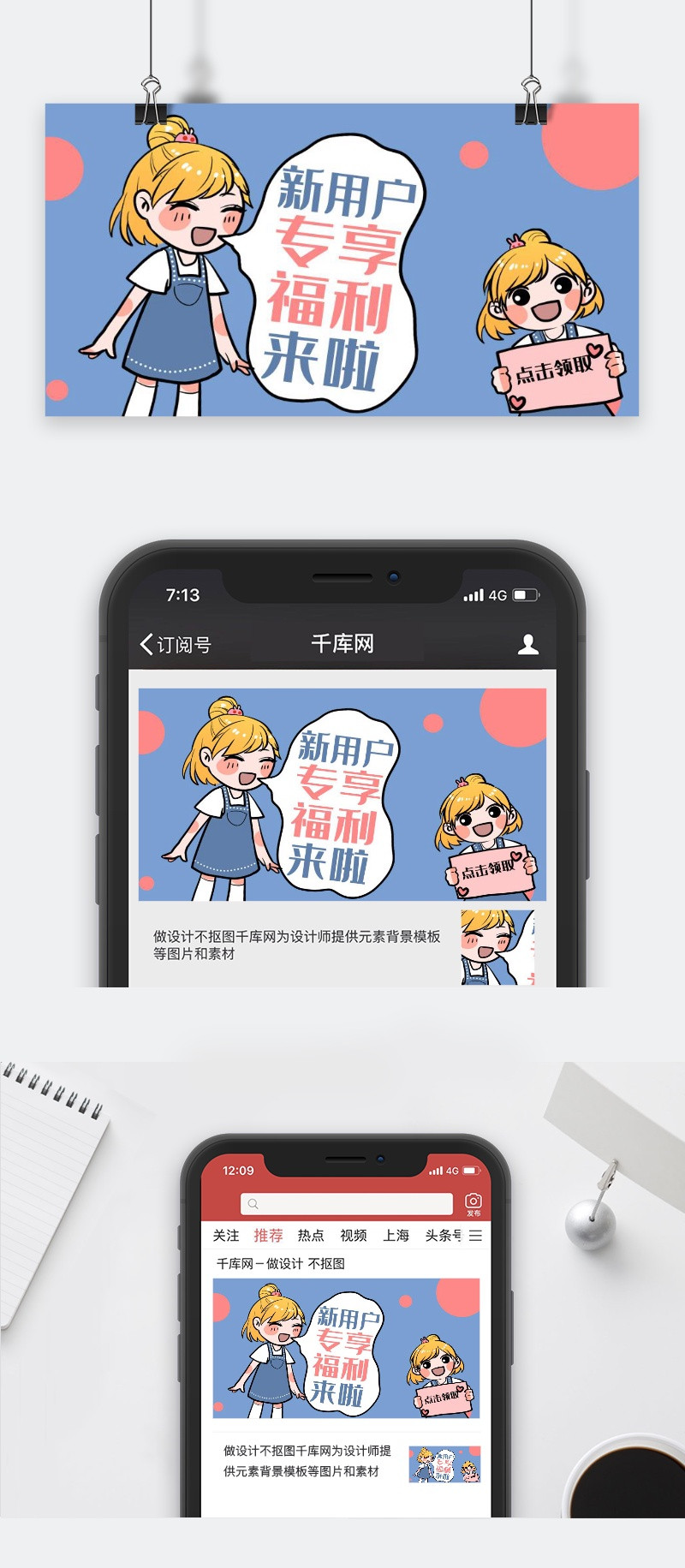 促销类蓝色卡通风新用户专享福利来啦公众号封面图