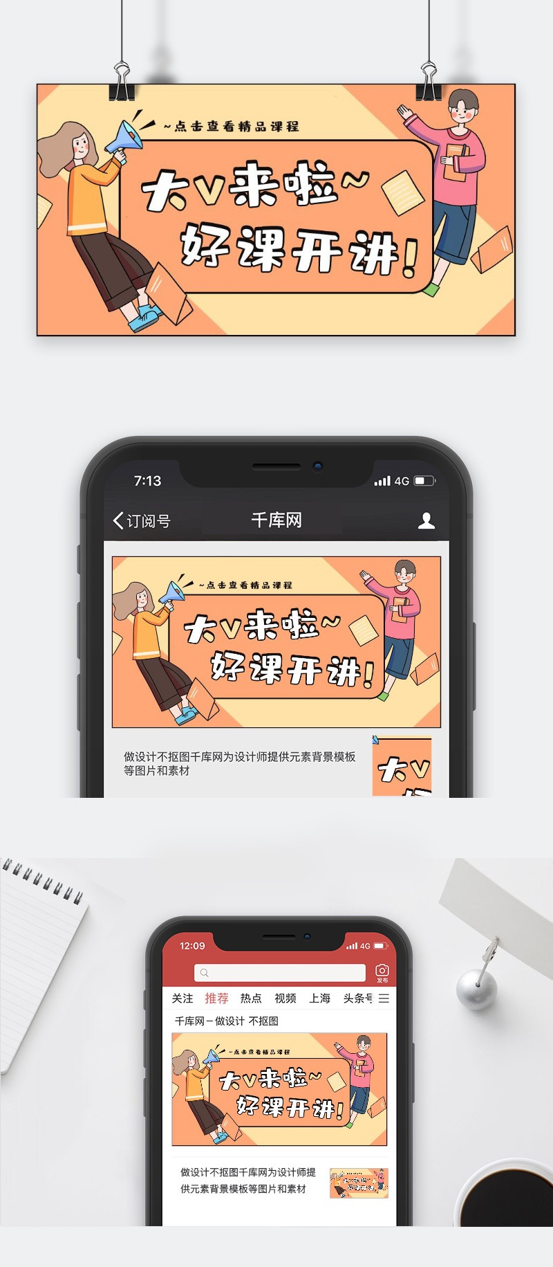 90设计提供课程培训大V开讲黄色简约公众号封面设计素材下载,高清PSD格式。【通用】多类目可用,产品、模特均可替换。【PSD】精细分层,贴好片。【设计】由90设计师独家设计。点击右侧免费下载按钮可进行课程培训大V开讲黄色简约公众号封面淘宝设计素材高速下载。
