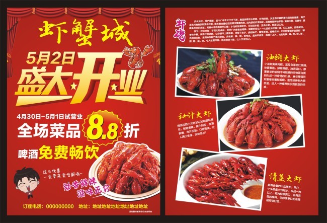 虾蟹城开业宣传单 虾蟹城 开业 宣传单 龙虾 油焖大虾 蒸虾 蒜蓉虾 盛大开业 单页