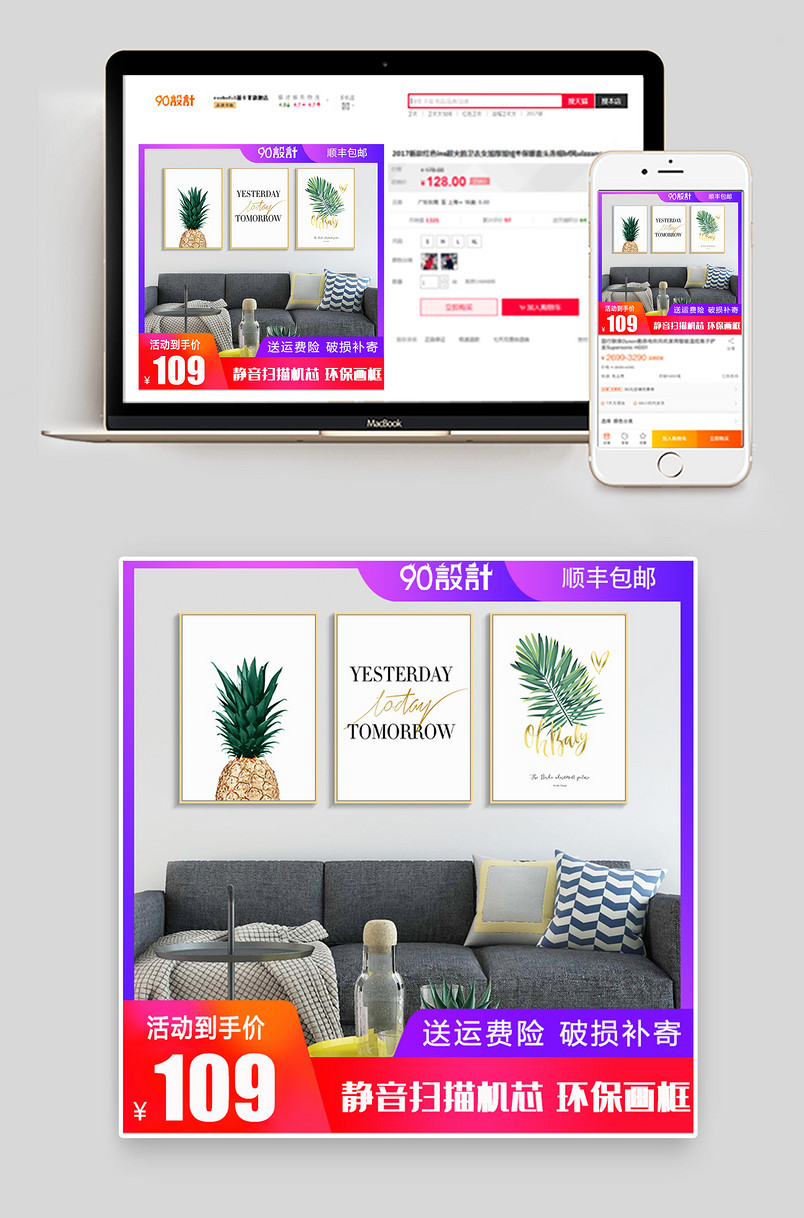 90设计提供简约时尚风格家居装饰画主图设计设计素材下载,高清PSD格式。【通用】多类目可用,产品、模特均可替换。【PSD】精细分层,贴好片。【设计】由90设计师独家设计。点击右侧免费下载按钮可进行简约时尚风格家居装饰画主图设计淘宝设计素材高速下载。