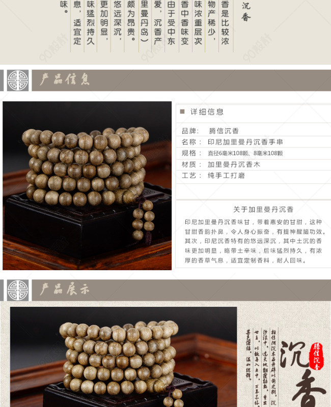 90设计提供沉香手串详情页设计素材下载,高清PSD格式。【通用】多类目可用,产品、模特均可替换。【PSD】精细分层,贴好片。【设计】由90设计师独家设计。点击右侧免费下载按钮可进行沉香手串详情页淘宝设计素材高速下载。