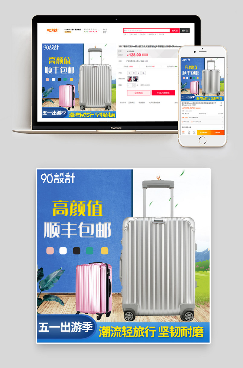 淘宝主图 直通车 拉杆旅行箱 清新 淘宝促销 旅行箱广告 行李箱广告
