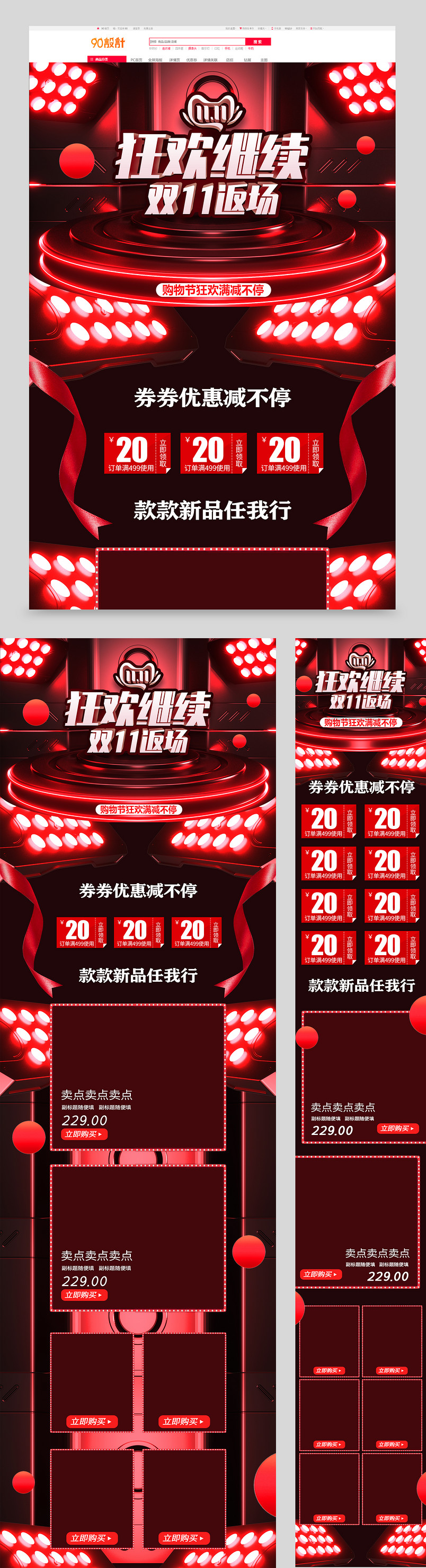 90设计提供双十一返场狂欢继续数码家电类全套首页设计素材下载,高清PSD格式。【通用】多类目可用,产品、模特均可替换。【PSD】精细分层,贴好片。【设计】由90设计师独家设计。点击右侧免费下载按钮可进行双十一返场狂欢继续数码家电类全套首页淘宝设计素材高速下载。