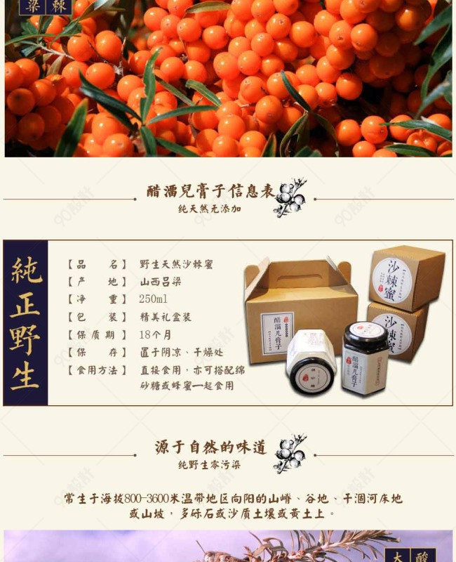 沙棘宝贝详情页 山西特产宝贝详情页 醋溜儿膏子 牛皮纸包装 沙棘素材 蜂蜜包装设计 包装设计 宝贝详情页 山西特产 礼盒包装 沙棘 绵砂糖